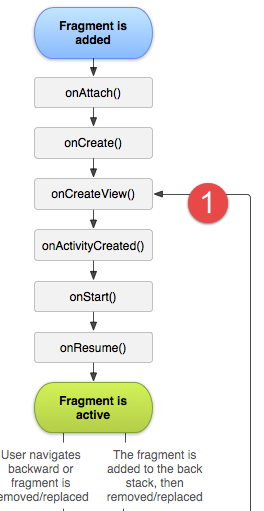 - ligne 11 : il ne faut pas oublier de remettre le [fragmentHasToBeInitialized] à faux, pour que lorsqu'on reviendra ultérieurement sur ce fragment sans qu'il y ait eu de rotation du périphérique, on ne refasse pas une initialisation inutile du fragment ;