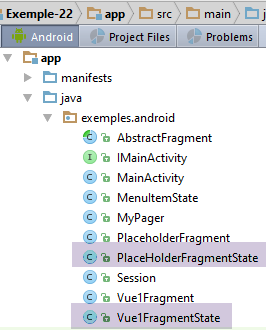 - lignes 9, 39 : on demande au fragment fille de sauvegarder son état. La méthode [saveFragment] est abstraite (ligne 47). C'est donc aux classes filles de l'implémenter ;