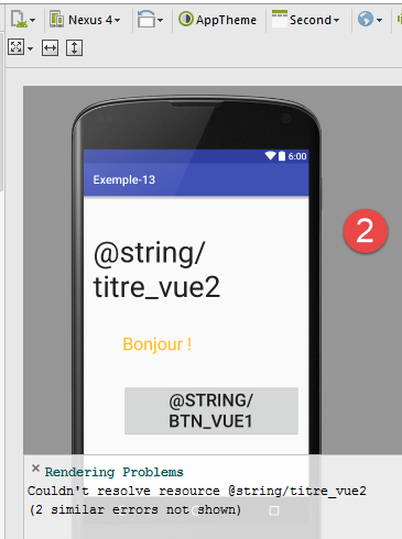 Les paragraphes précédents n'ont pas abordé la gestion des onglets. Or nous avons vu un problème dans l'exemple 21 lors de la rotation du périphérique : seul le 1er onglet [Vue 1] était conservé. Le second onglet lui était perdu.
