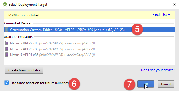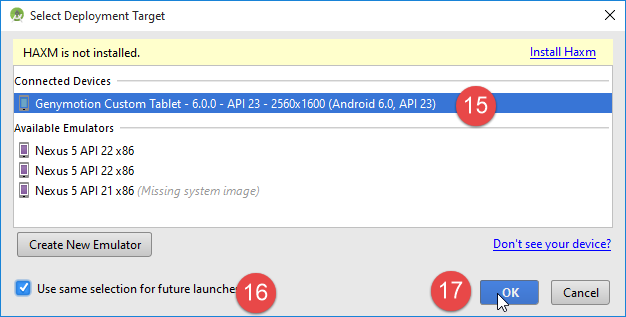 - Emulateur Genymotion, version 2.6.0 ;