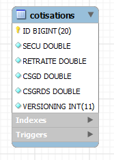 Table COTISATIONS : rassemble les taux des cotisations sociales prélevées sur le salaire