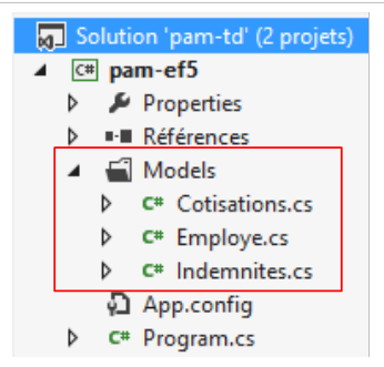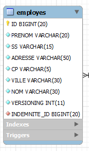Il y a une relation de clé étrangère entre la colonne EMPLOYES(INDEMNITE_ID) et la colonne INDEMNITES(ID). La structure de cette base est dictée par son utilisation avec EF5. Nous reviendrons dessus lorsque nous construirons les couches basses de l'application.