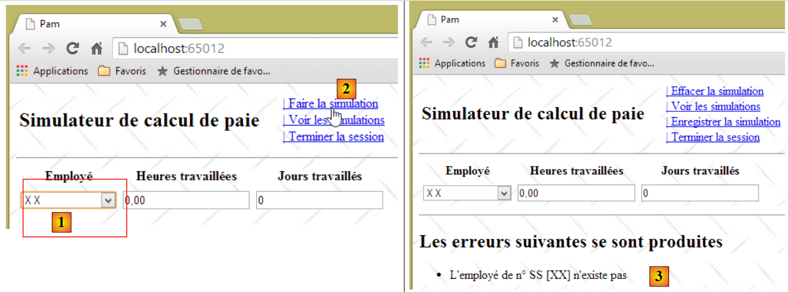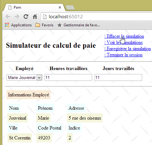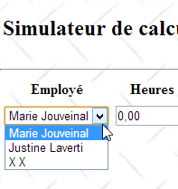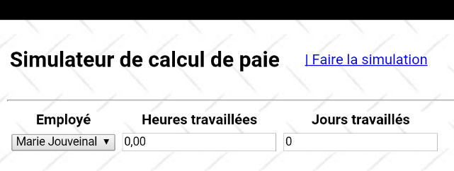 - [Formulaire] : formulaire de saisie de l'employé et de ses heures et jours travaillés,