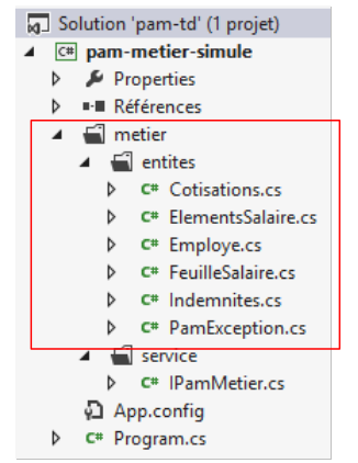 L'interface [IPamMetier] offerte à la couche [web] par la couche [métier] doit répondre aux exigences ci-dessus. Il existe de nombreuses interfaces possibles. Nous proposons la suivante :
