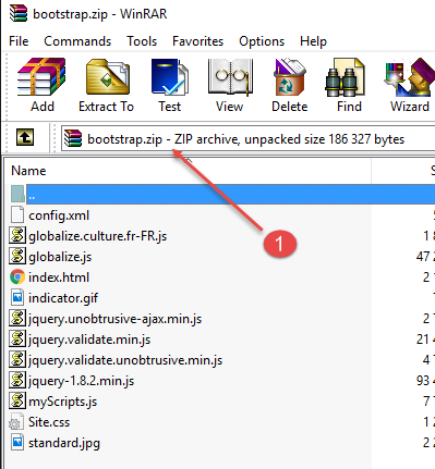Nous zippons le contenu du dossier [Content/bootstrap] :