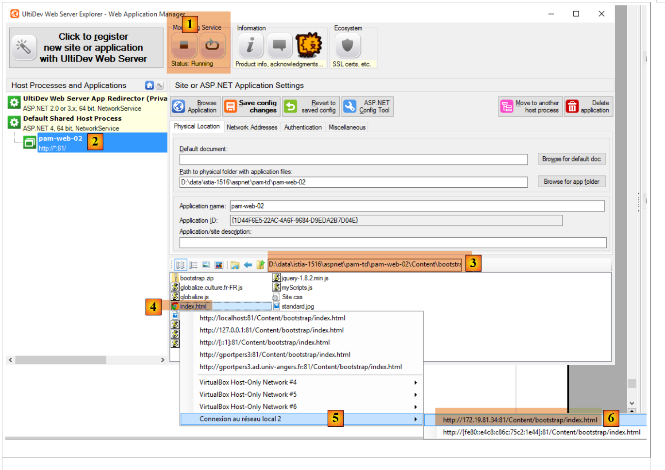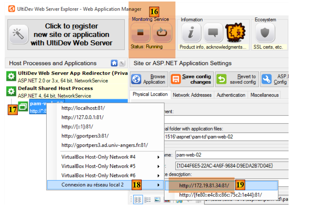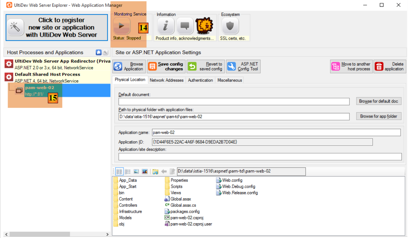 Au paragraphe 9.26, nous avons montré comment installer l'application [pam-web-02] sur le serveur Ultidev. Nous allons partir de là :