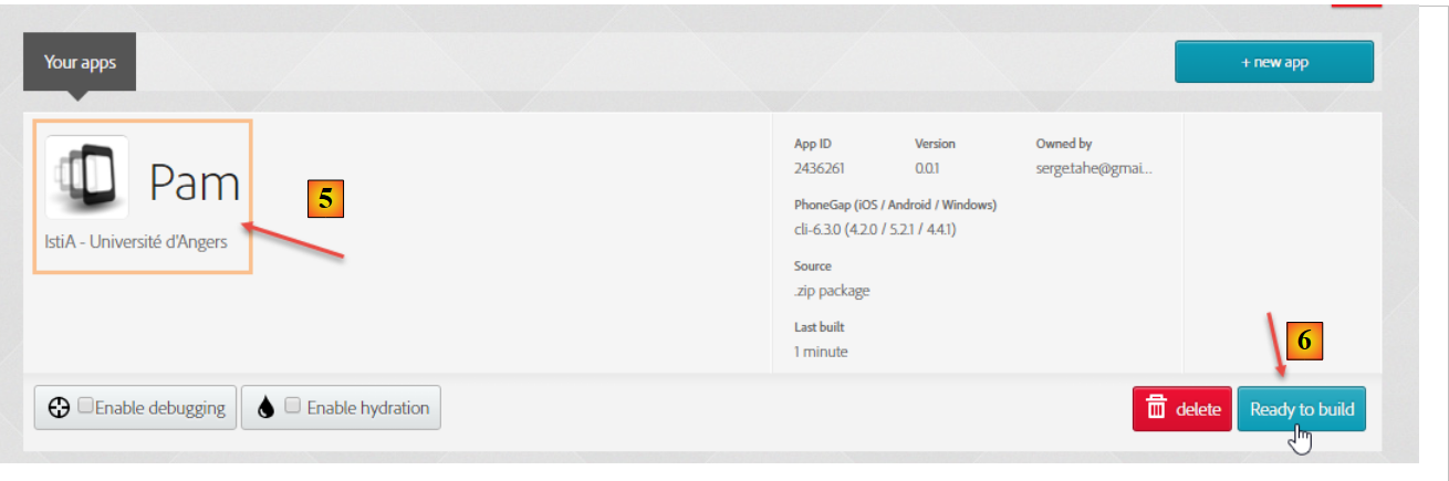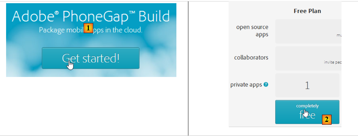 - en [2], on choisit un plan gratuit n'autorisant qu'une application Phonegap ;
