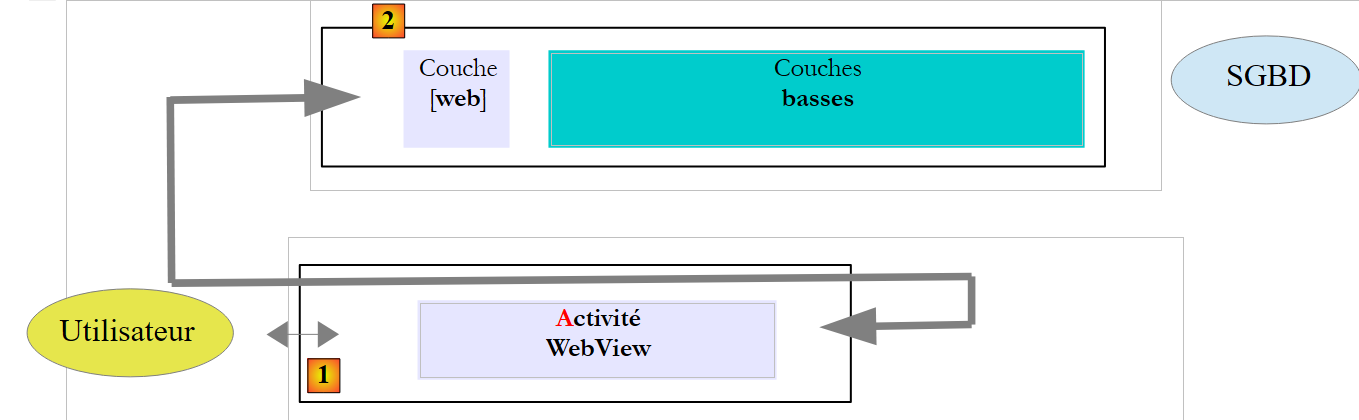 - lignes 11-13 : ces lignes permettent au Javascript embarqué dans l'application web qui va s'exécuter au sein du périphérique Android de requêter des URL extérieures à ce périphérique ;