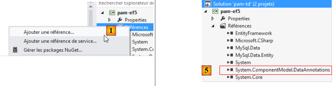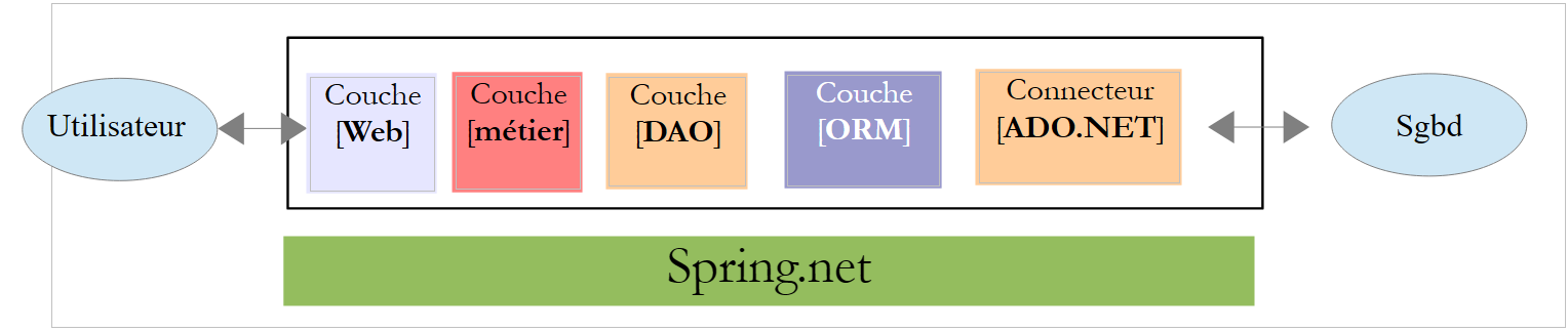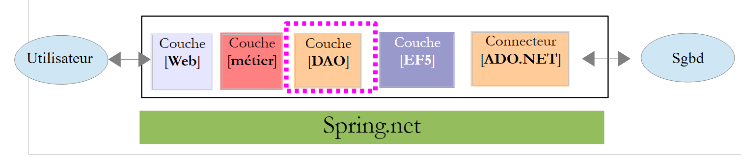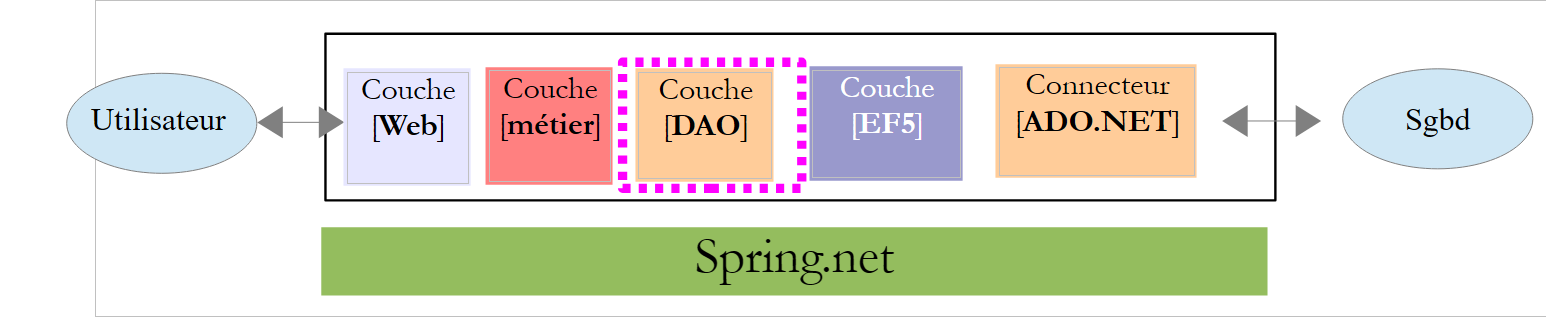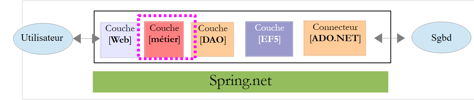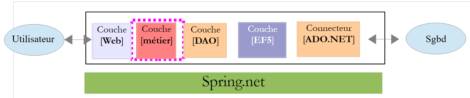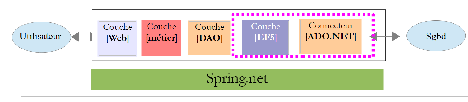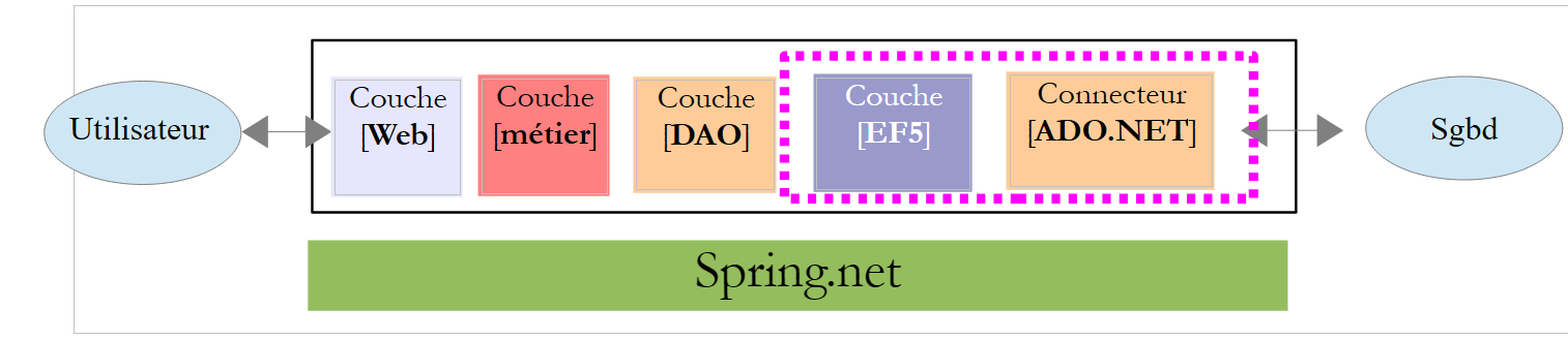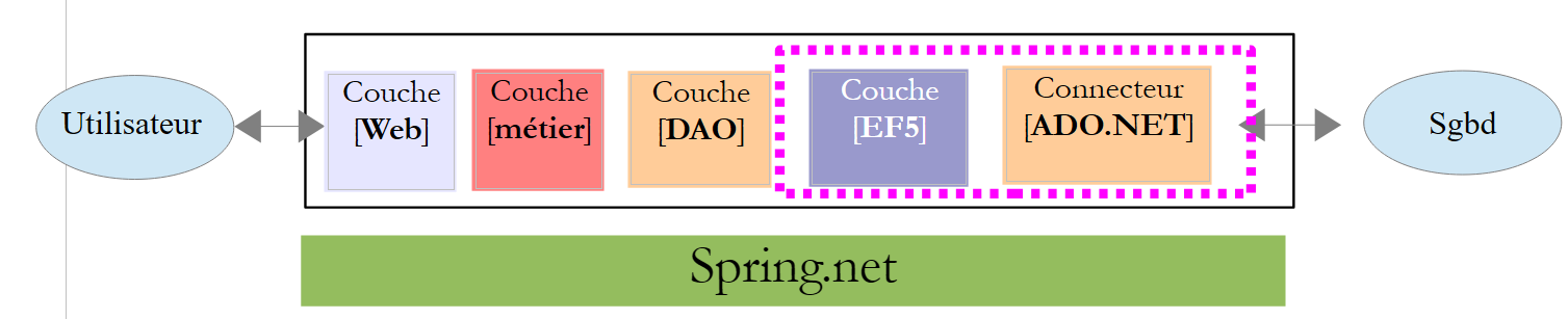 La couche [EF5] désigne l'ORM Entity Framework 5. Le SGBD utilisé sera MySQL.