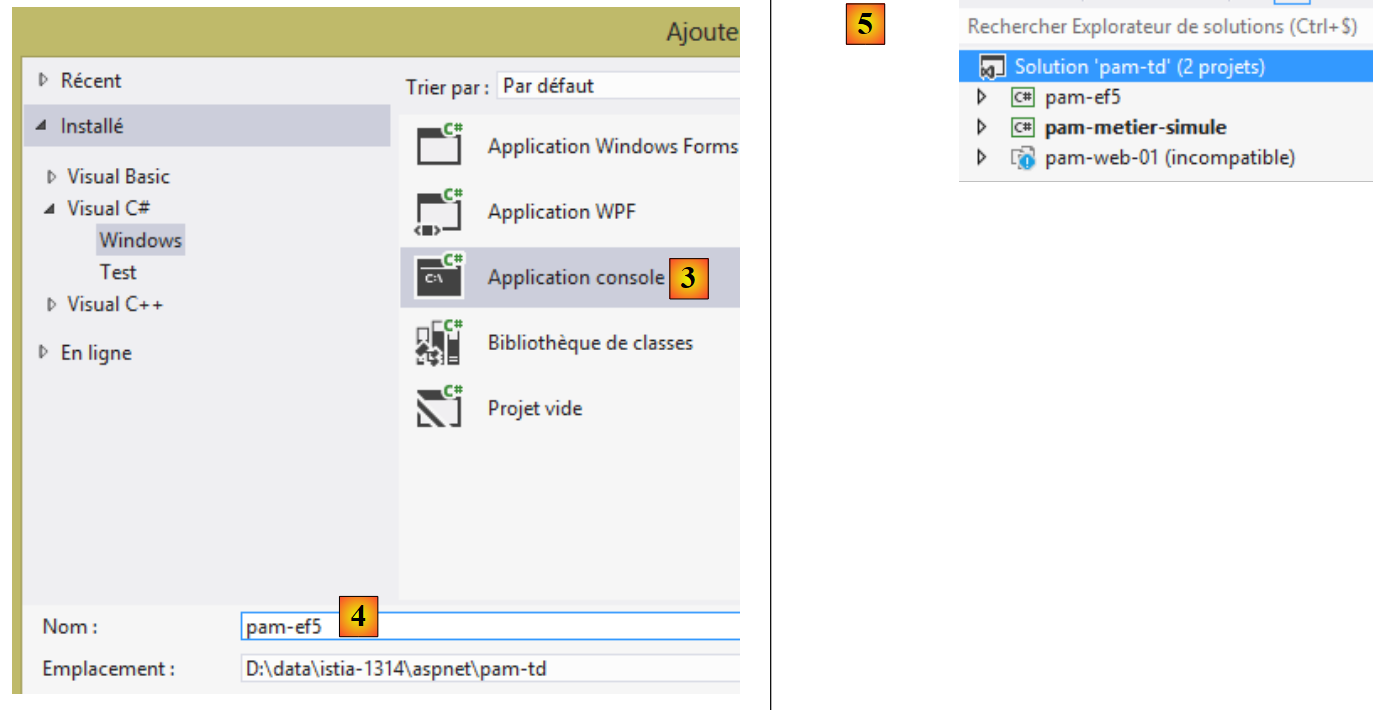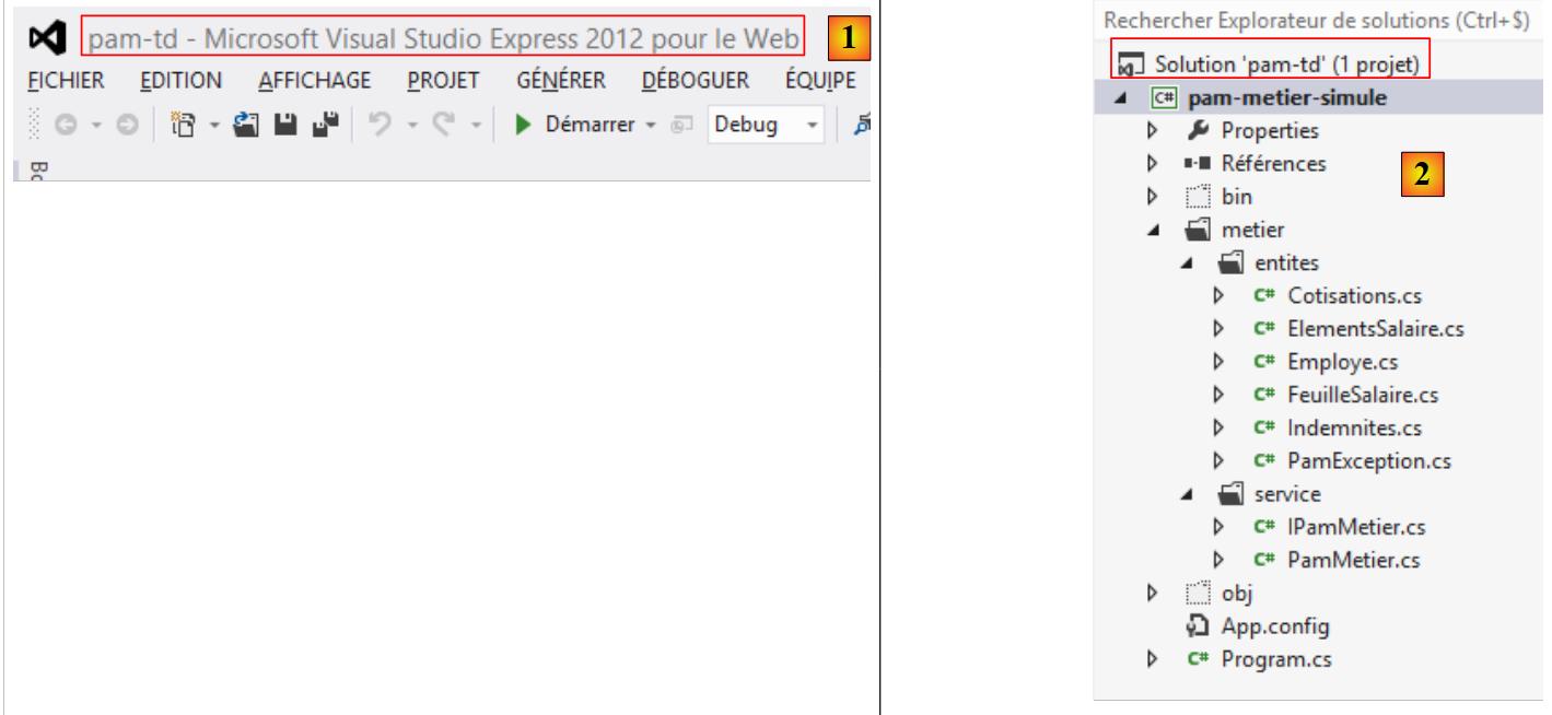 Avec Visual Studio Express pour le bureau, nous créons une solution [pam-td] :
