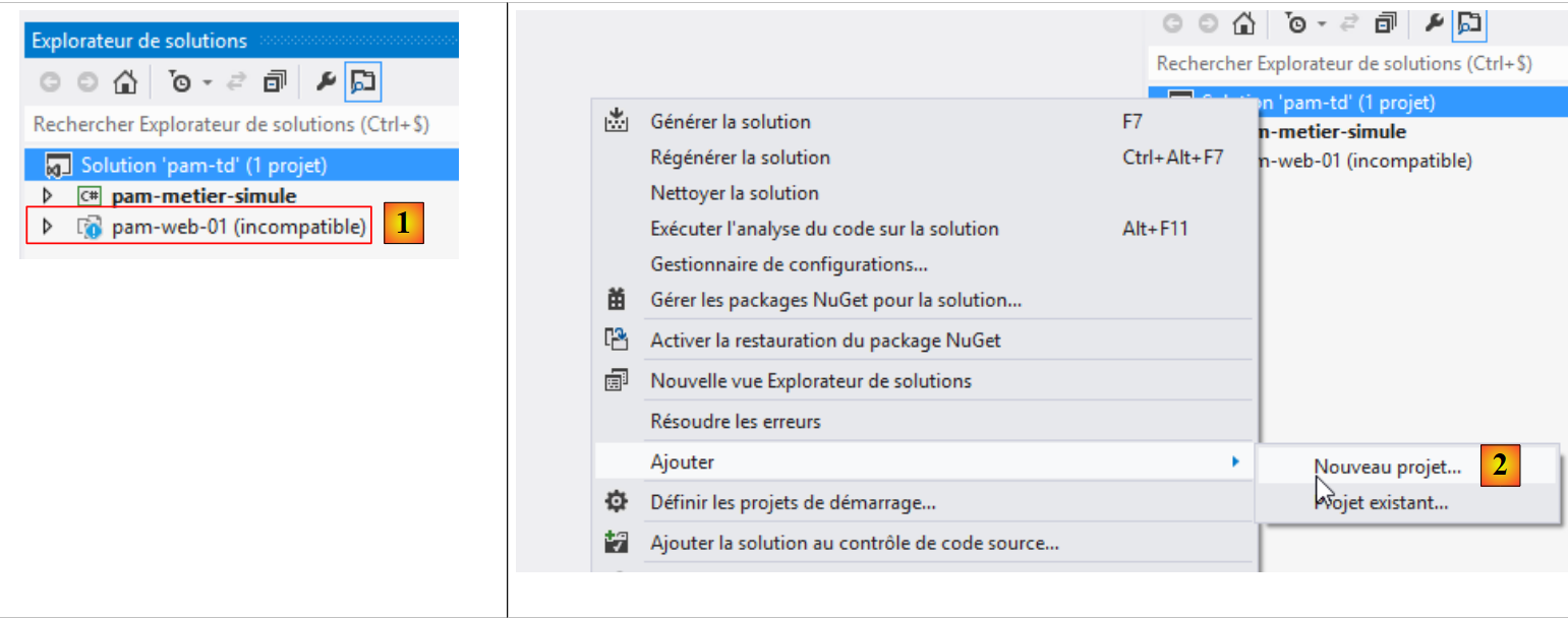 Nous allons tout d'abord créer une solution Visual Studio dans laquelle nous allons créer deux projets :