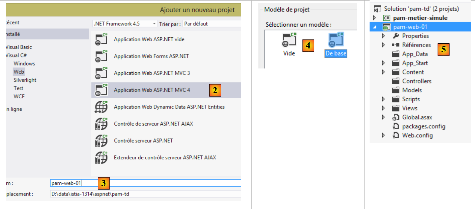 Le projet Visual Web Developer de l'application sera le suivant :