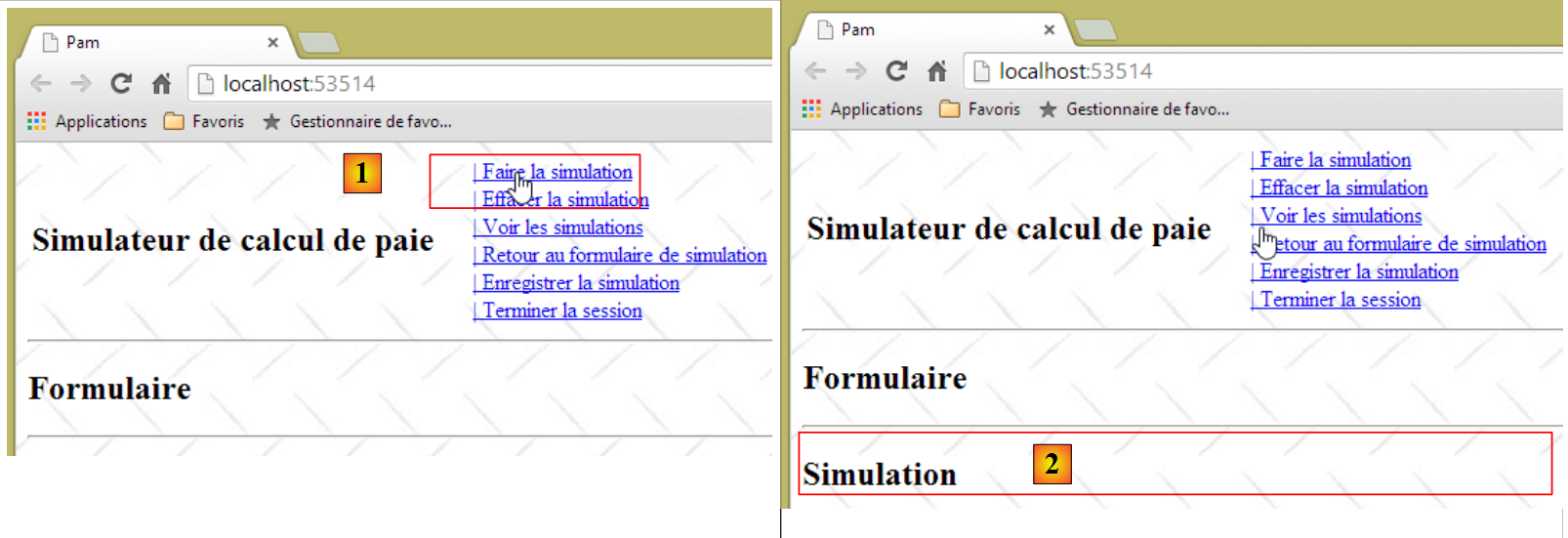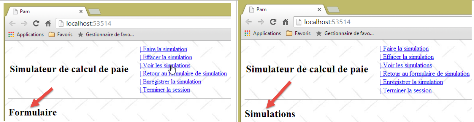 On est alors dans la situation précédente où désormais les vues sont obtenues par des appels Ajax. Ainsi ci-dessus, le clic sur le lien [Faire la simulation] va être exécuté par le code suivant du fichier [myScripts.js] :