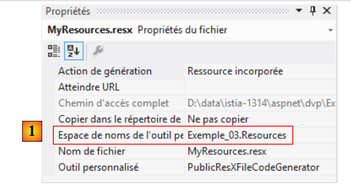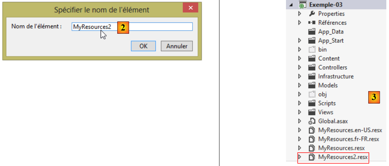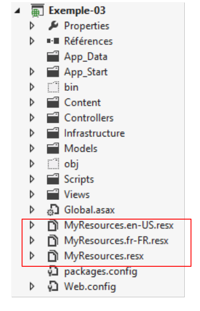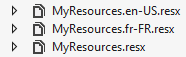 Les valeurs des propriétés [Regionale] et [FormatDate] sont trouvées dans les fichiers de ressources [MyResources]. Les fichiers de ressources français [MyResources] [MyResources.fr-FR] [1] et le fichier de ressources anglais [2] évoluent comme suit :