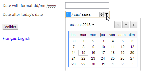 JQuery UI est un projet dérivé du projet JQuery et offre des composants pour les formulaires dont un calendrier. Ce calendrier peut être internationalisé. C'est ce que nous allons montrer.
