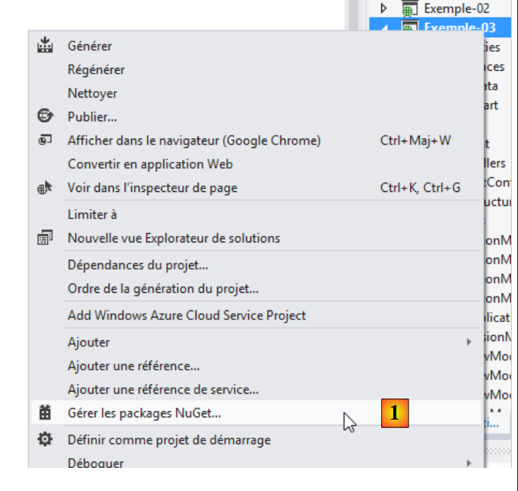 - en [1], gérez les paquetages [NuGet] du projet [Exemple-03] ;
