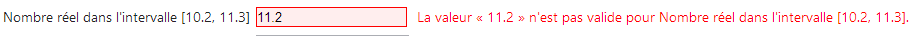 Ci-dessus, la validation côté client nous laisse taper [11.2] avec la notation anglo-saxonne. Cette valeur n'est pas acceptée côté serveur lorsqu'on valide le formulaire :