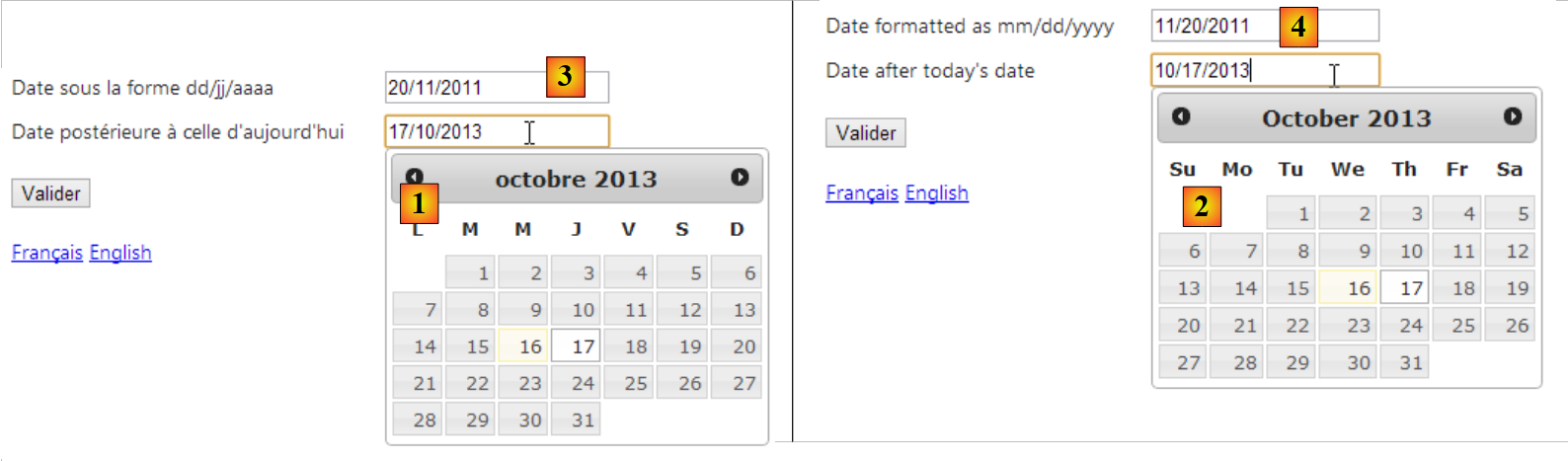 - en [1], un calendrier français lorsque la page est en français ;