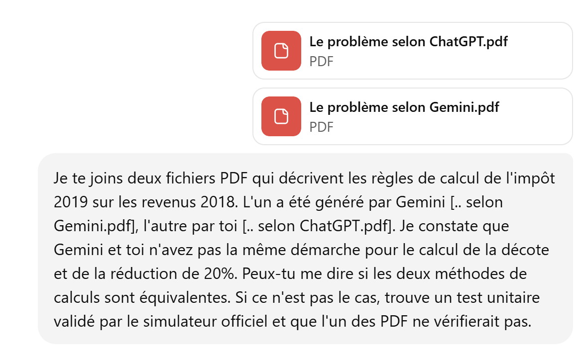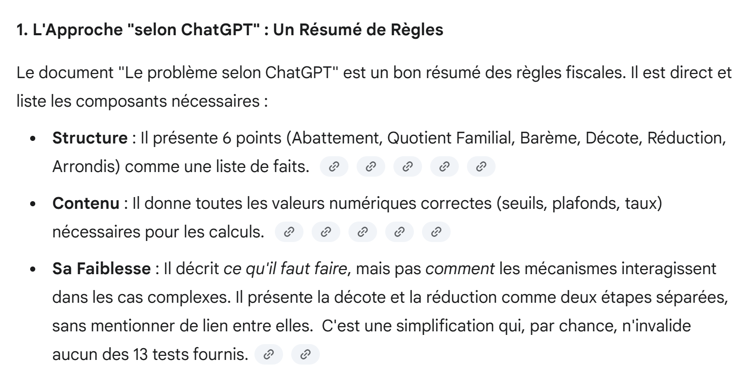 Diesmal stellen wir nicht die PDF-Datei zur Verfügung, die die zu beachtenden Berechnungsregeln enthielt. Wir geben lediglich unsere Anweisungen in der Textdatei an. Zur Erinnerung: Diese Textdatei enthält nun 12 Unit-Tests, nachdem wir zu den ursprünglichen 11 Tests denjenigen hinzugefügt haben, den Gemini verwendet hat, um zu zeigen, dass meine ursprüngliche PDF-Datei fehlerhaft war.