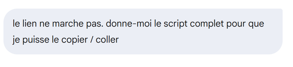 Wie zuvor hat Gemini einen Download-Link für das generierte Skript bereitgestellt, der jedoch nicht funktioniert. Wir weisen ihn darauf hin: