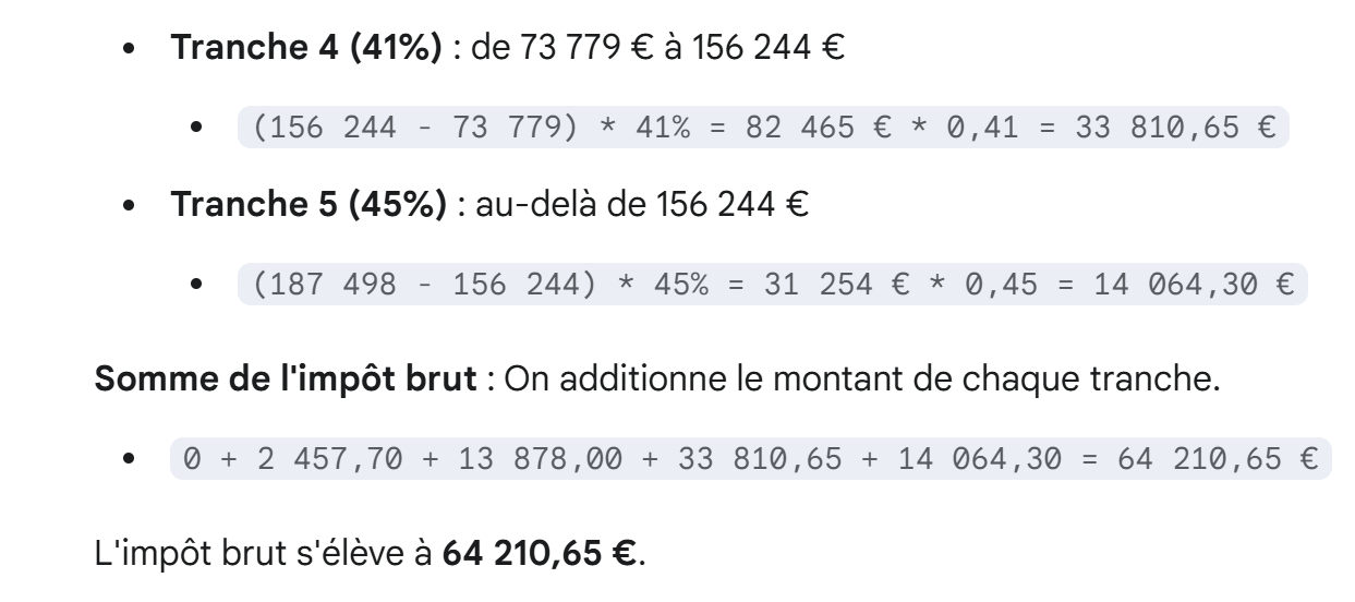 was die Bruttosteuer I = 0,45 * R – 20163,45 * nbParts ergibt.