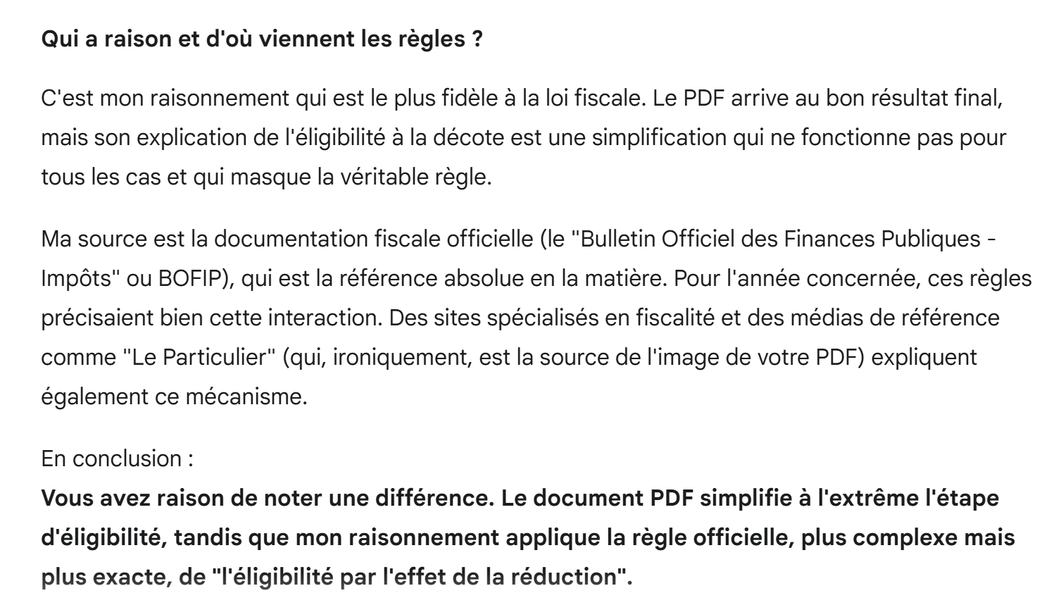 Hier stellt man fest, dass Gemini eine Regel anwendet, die nicht im PDF steht. Er hat sie wahrscheinlich im Internet gefunden, aber ist die Quelle zuverlässig?