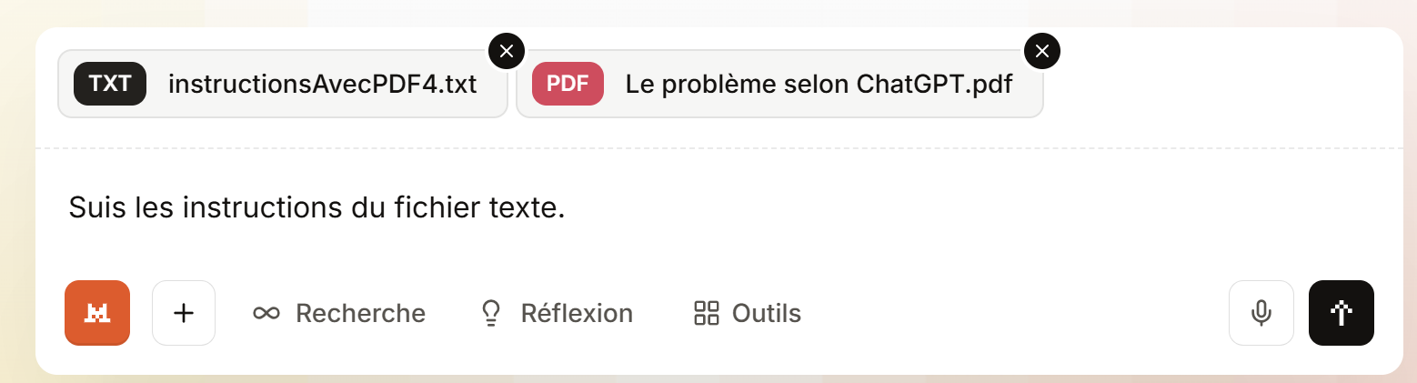 - In [2] den Verlauf Ihrer Fragen. Die kostenlosen Sitzungen von MistralAI sind hinsichtlich der Anzahl der Fragen, der Anzahl der angehängten Dateien und der aufgewendeten Zeit sehr begrenzt. Ich musste ein kostenpflichtiges Monatsabonnement abschließen, um die folgenden Tests durchzuführen;