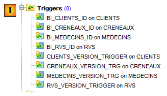 Les triggers [ BI_CLIENTS_ID, BI_MEDECINS_ID, BI_CRENEAUX_ID, BI_RVS_ID] sont tous construits de la même façon.