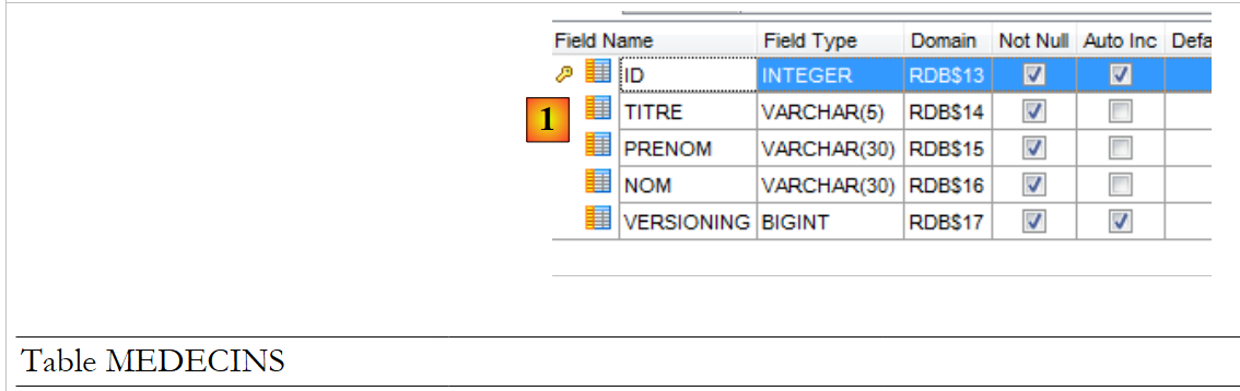 - [MEDECINS_ID_GEN] sera utilisé pour générer la clé primaire de la table [MEDECINS] ;