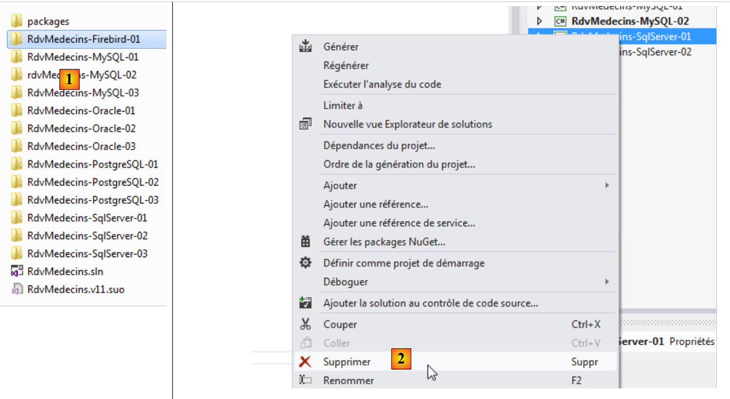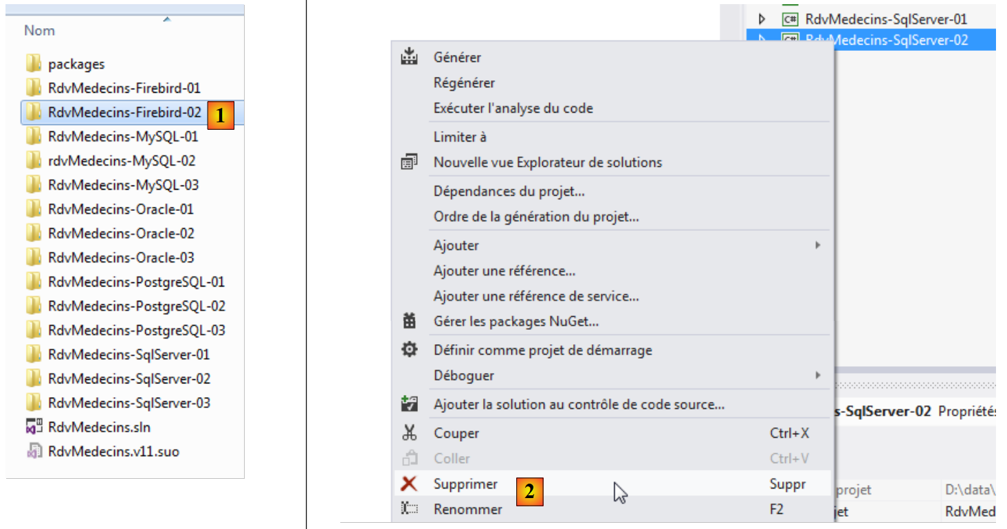 - en [2], on supprime le projet [RdvMedecins-SqlServer-02] ;