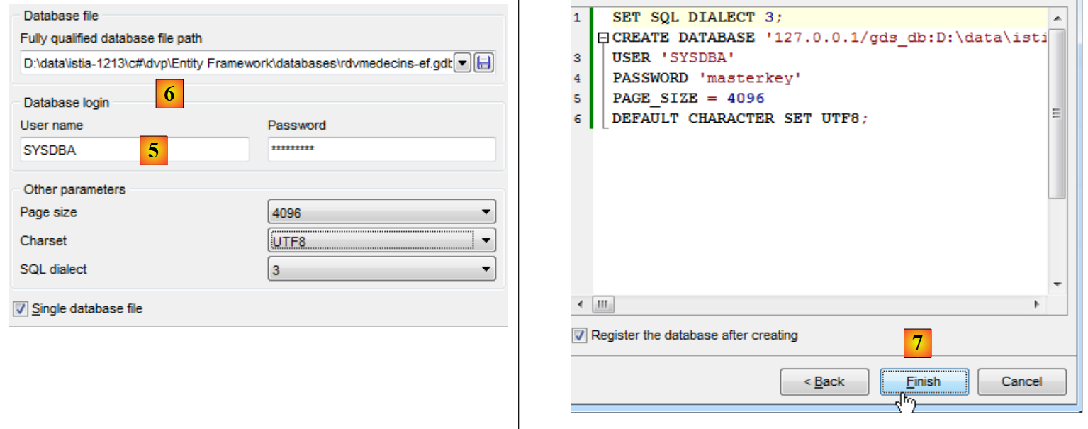 - en [6], on désigne l'emplacement du fichier qui va être créé. En effet, la base va être créée dans un unique fichier ;
