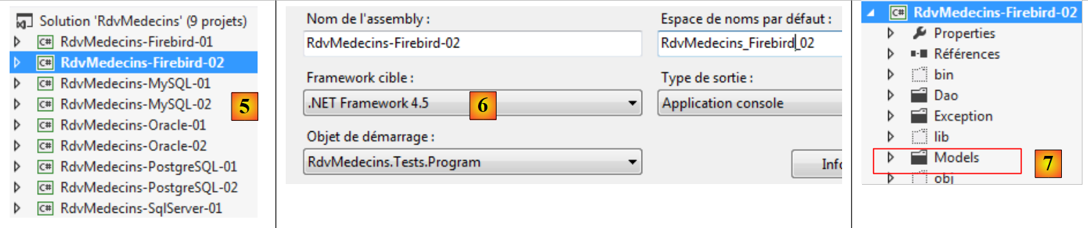 - en [7], le dossier [Models] est supprimé pour être remplacé par le dossier [Models] du projet [RdvMedecins-Firebird-01]. En effet, les deux projets partagent les mêmes modèles.