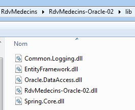 Nous créons la DLL du projet comme il a été fait pour le projet [RdvMedecins-SqlServer-02] et nous rassemblons l'ensemble des DLL du projet dans un dossier [lib] créée dans [RdvMedecins-Oracle-02]. Ce seront les références du projet web [RdvMedecins-Oracle-03] qui va suivre.