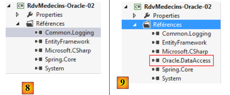 - en [9], on y a ajouté le connecteur ADO.NET d'Oracle avec l'outil NuGet.