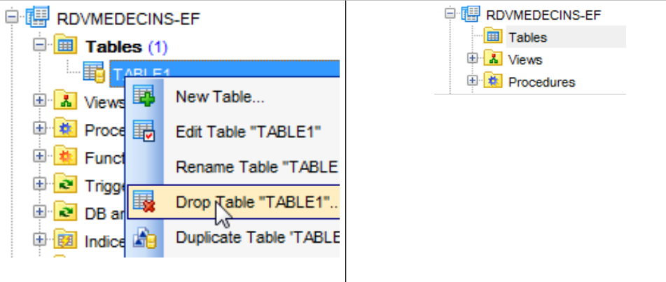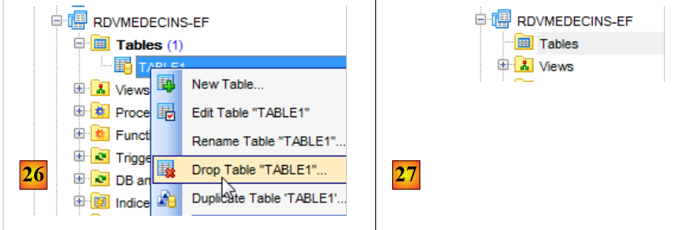 - en [26], la table a été créée. On la supprime ;