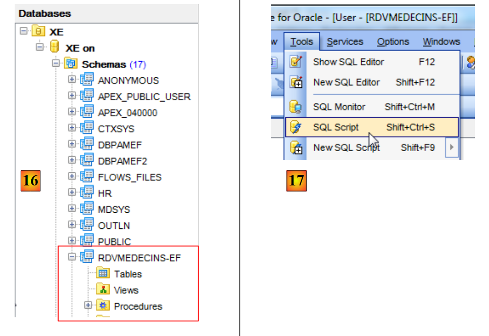 - en [16], l'utilisateur [RDVMEDECINS-EF] est également un schéma de base de données ;