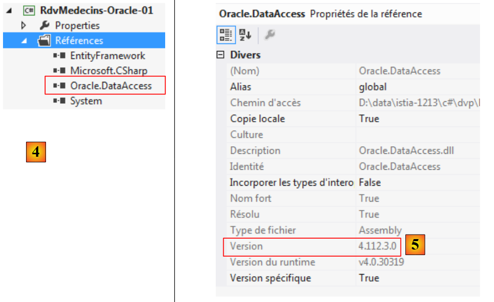 - en [5], dans [App.config], il faut mettre la version correcte de la DLL. On la trouve dans ses propriétés.