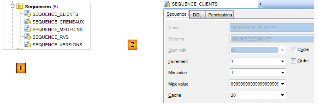 On a créé ici des séquences Oracle. Ce sont des générateurs de nombres consécutifs. Il y en a 5 [1].