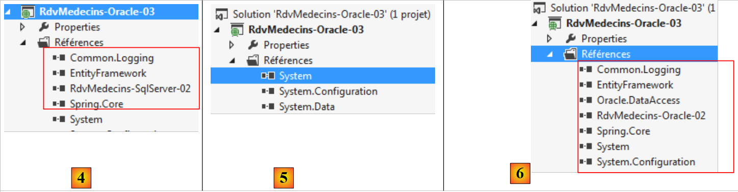 - en [6], pour les remplacer par des références sur les DLL que nous venons de stocker dans un dossier [lib] du projet [RdvMedecins-Oracle-02].