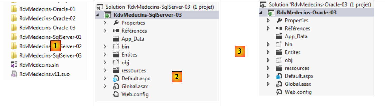 Nous allons partir du projet [RdvMedecins-SqlServer-03]. Nous dupliquons le dossier de ce projet dans [RdvMedecins-Oracle-03] [1] :