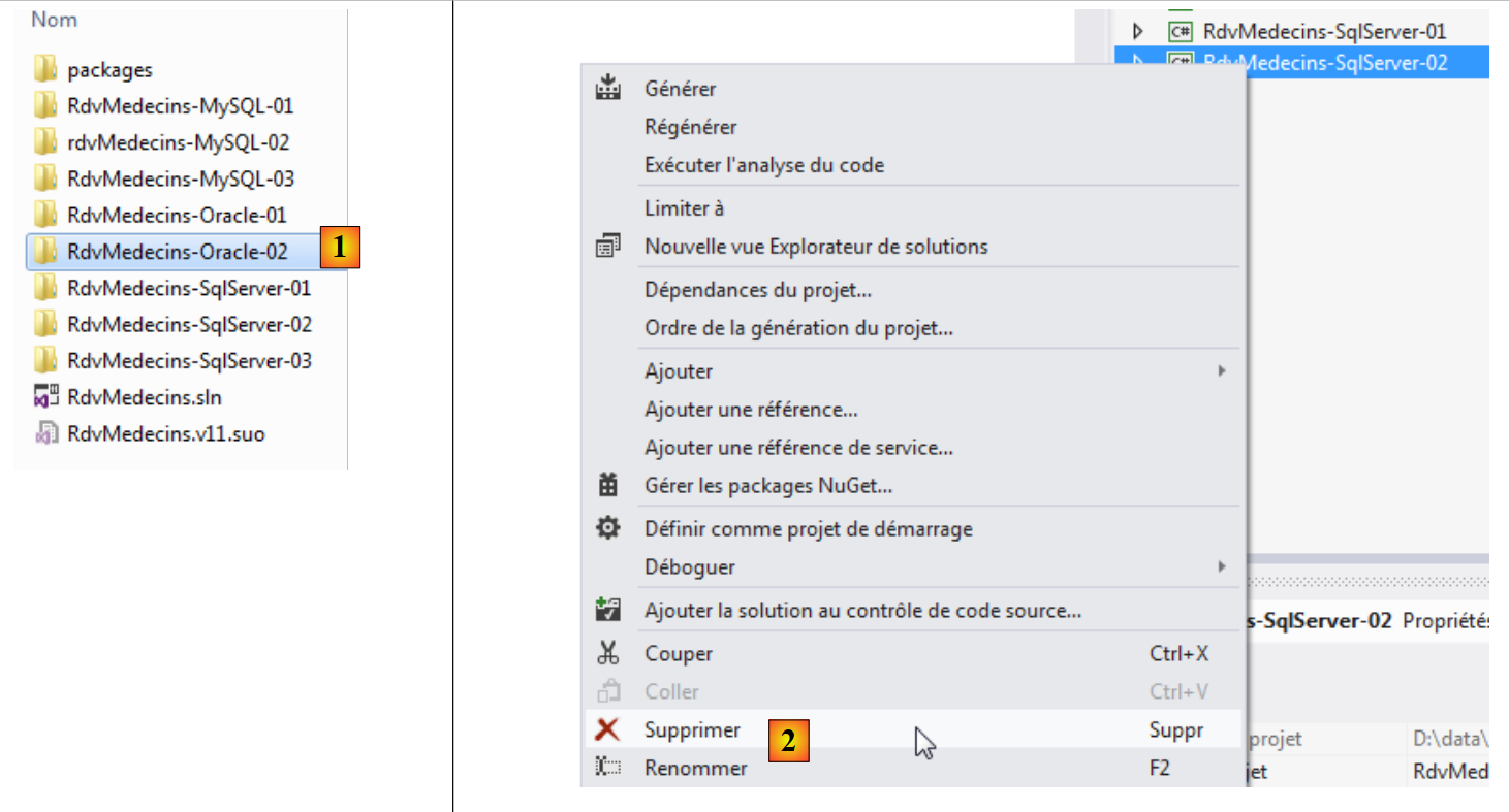 - en [2], on supprime le projet [RdvMedecins-SqlServer-02] ;