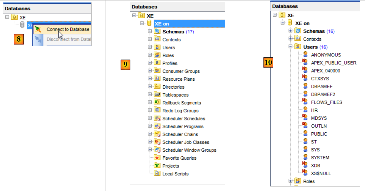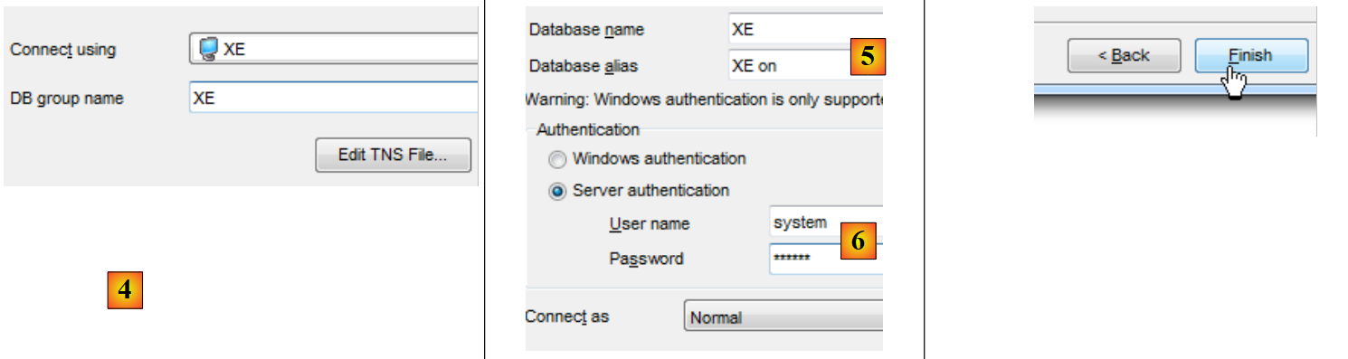 - en [4], nous utilisons le service Oracle XE pour se connecter ;