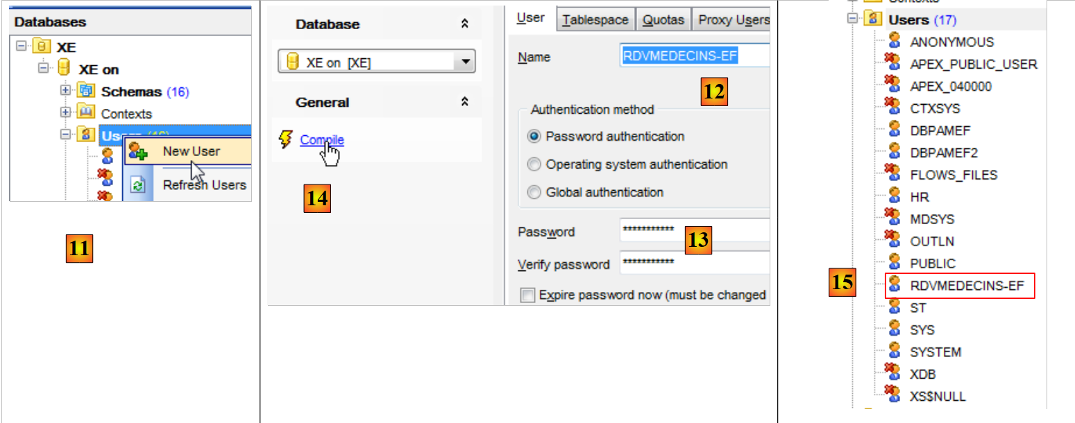- en [14], on valide la création de l'utilisateur ;