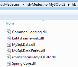 Nous créons la DLL du projet comme il a été fait pour le projet [RdvMedecins-SqlServer-02] et nous rassemblons l'ensemble des DLL du projet dans un dossier [lib] créé dans [RdvMedecins-MySQL-02]. Ce seront les références du projet web [RdvMedecins-MySQL-03] qui va suivre.