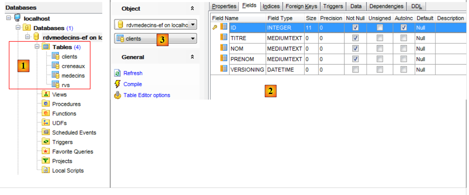 - en [2], on voit la structure de la table [clients] [3].
