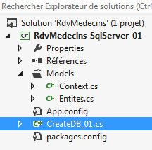 Nous garderons cette habitude par la suite de mettre la définition de nos entités dans le dossier [Models].