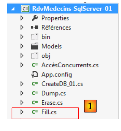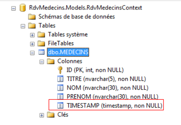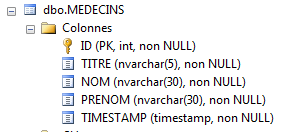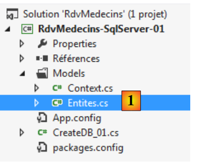 Les entités doivent refléter les tables de la base de données. La couche d'accès aux données utilise ces entités au lieu de travailler directement avec les tables. Commençons par la table [MEDECINS] :