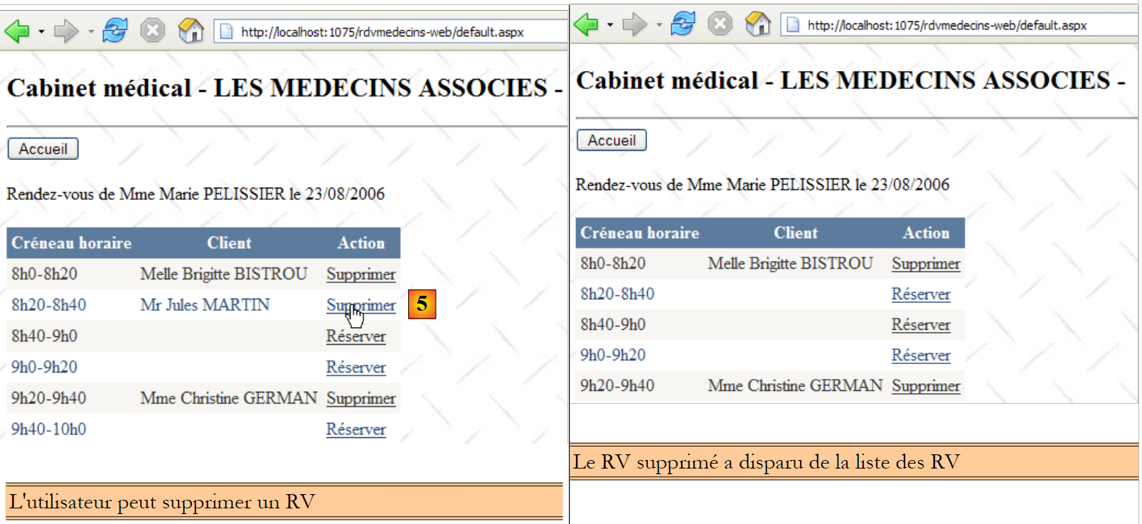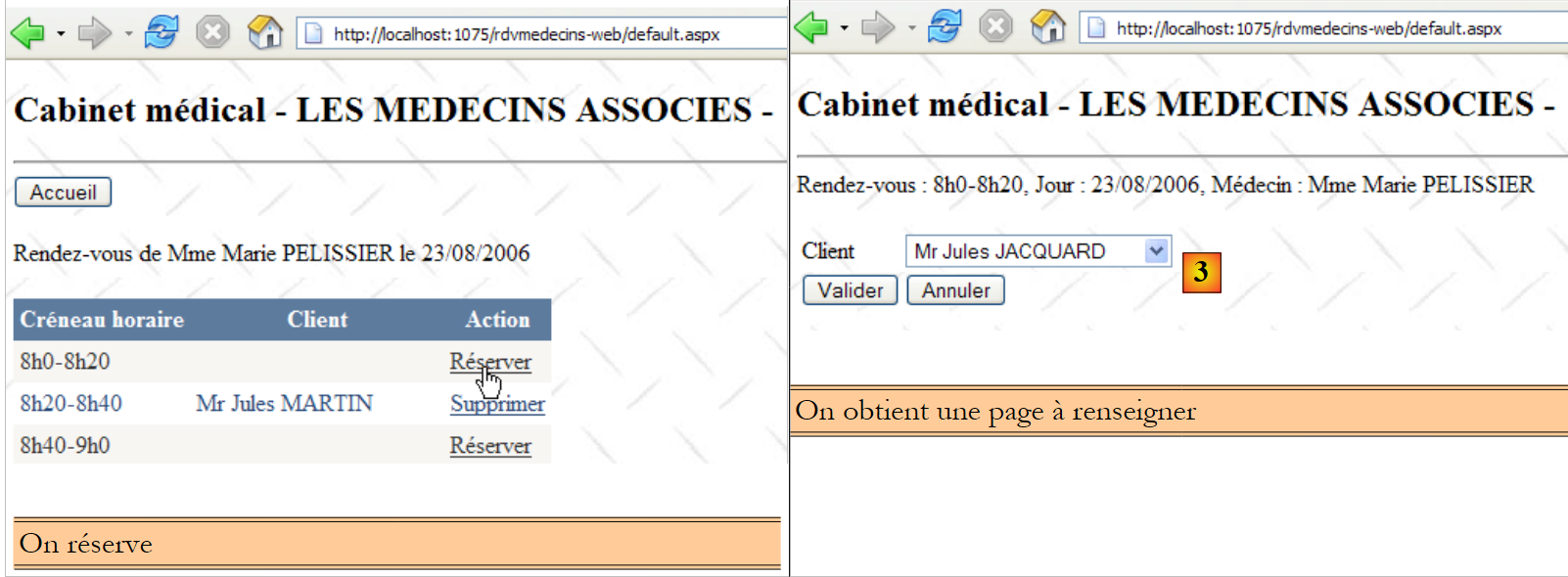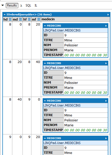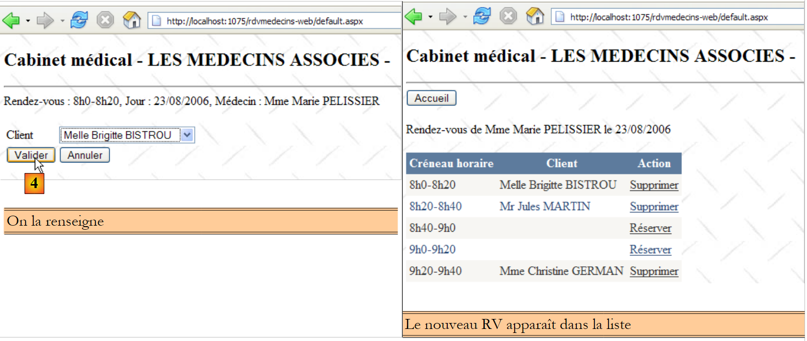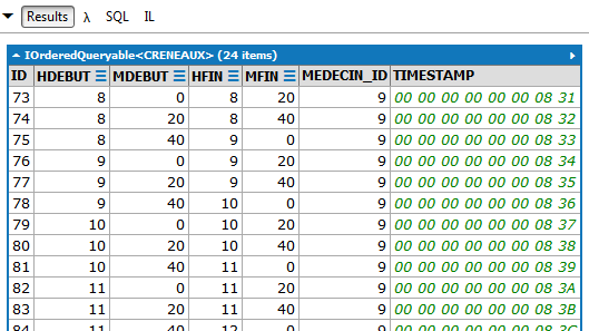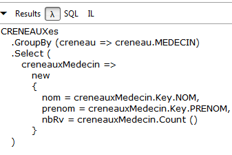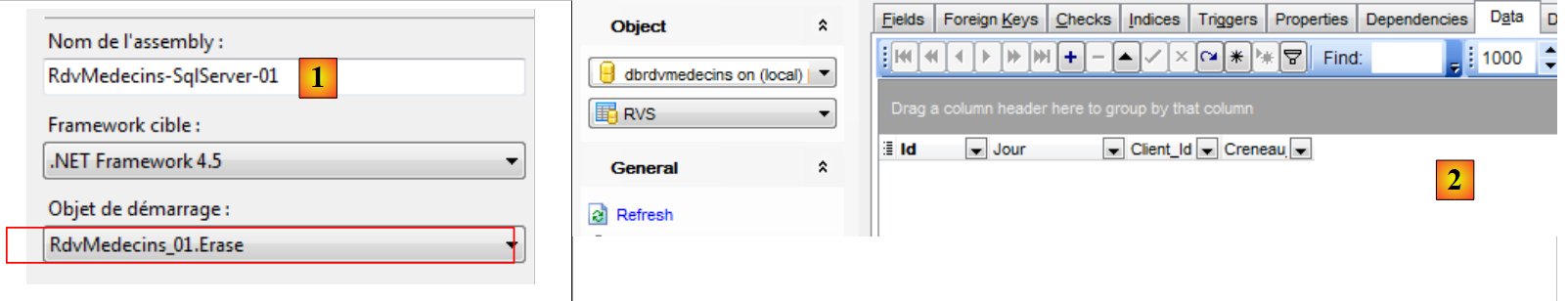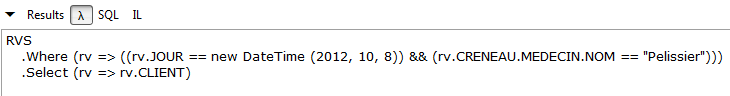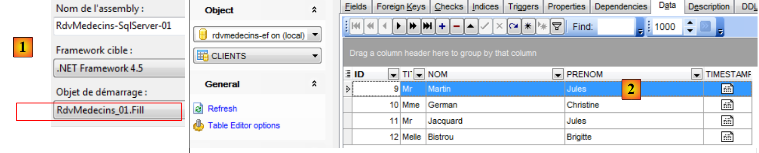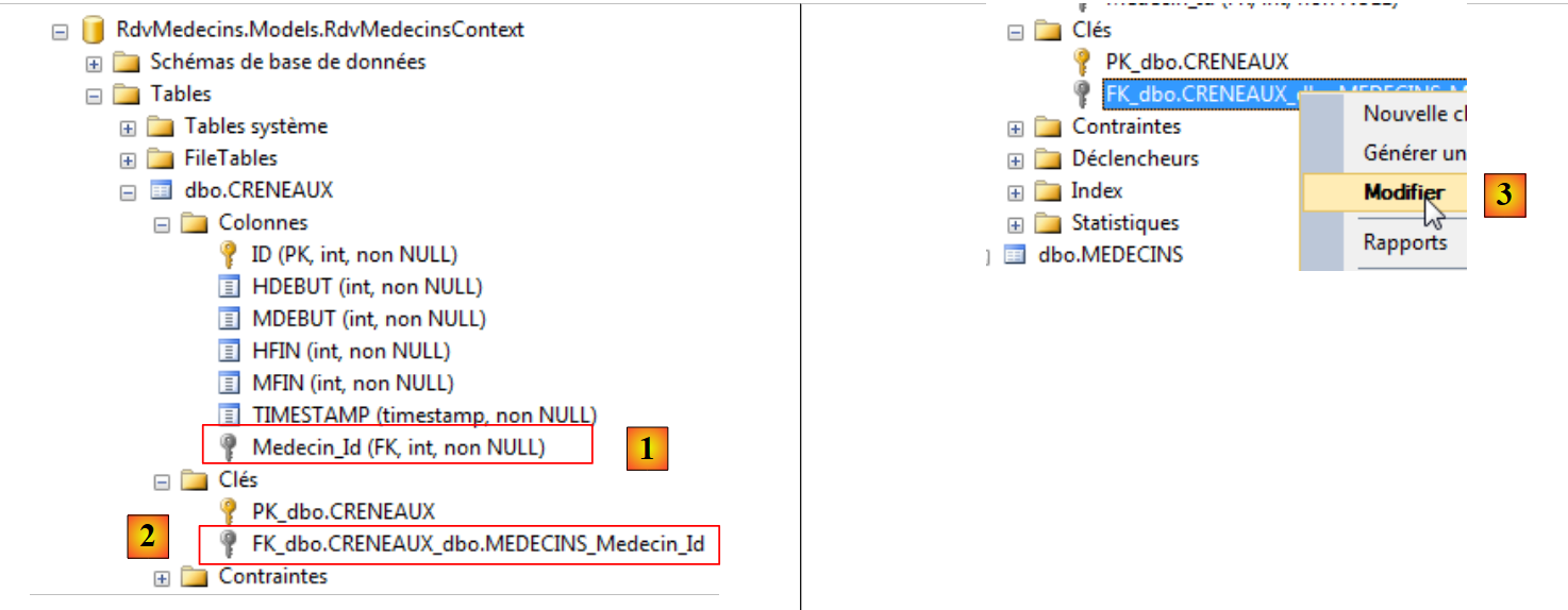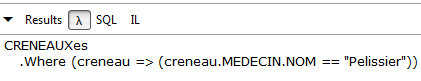 De nouveau on notera l'intérêt que les entités embarquent leurs clés étrangères. Ici, l'entité [Rv] nous donne accès à la clé étrangère de la dépendance [Creneau] associée. Ces deux corrections faites, l'application marche. Le lecteur est invité à tester l'application [RdvMedecins-SqlServer-03] présente dans les téléchargements des exemples du site web de cet article.