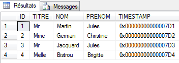 - TITRE : son titre (Melle, Mme, Mr)