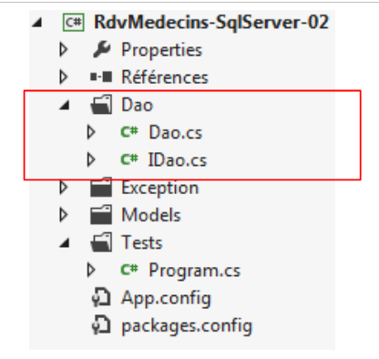 Dans le programme de test l'instruction qui instancie la couche [DAO]est la suivante :